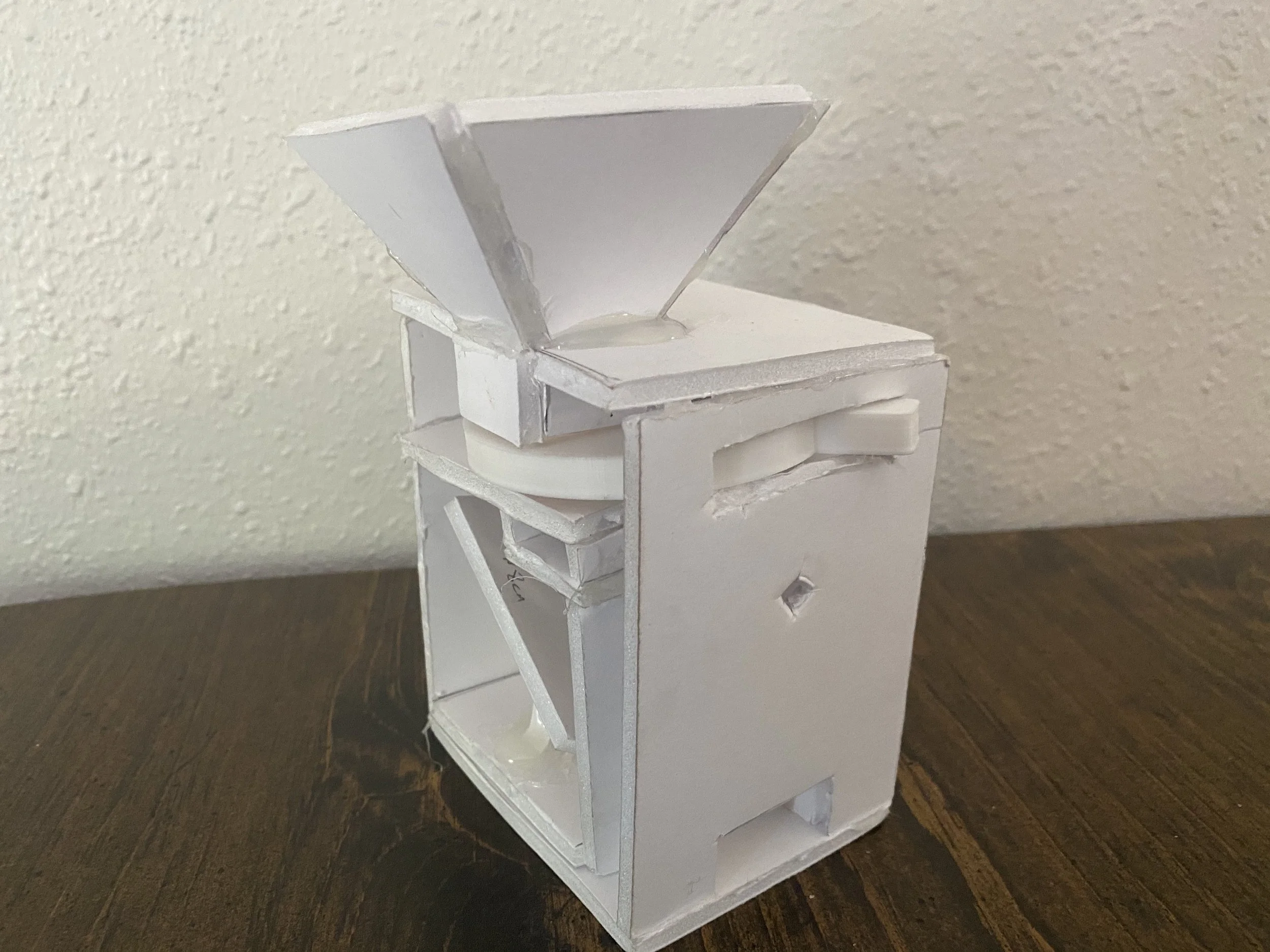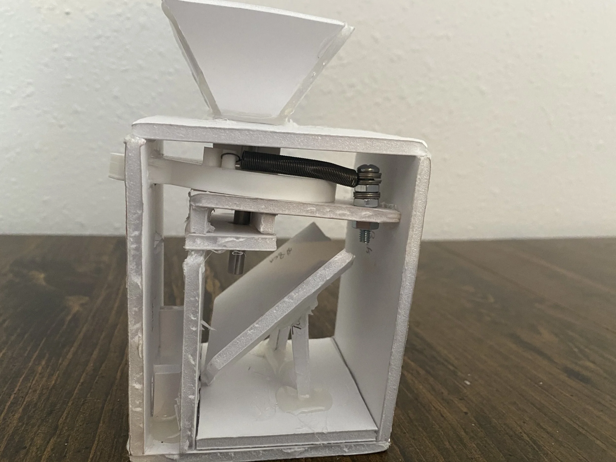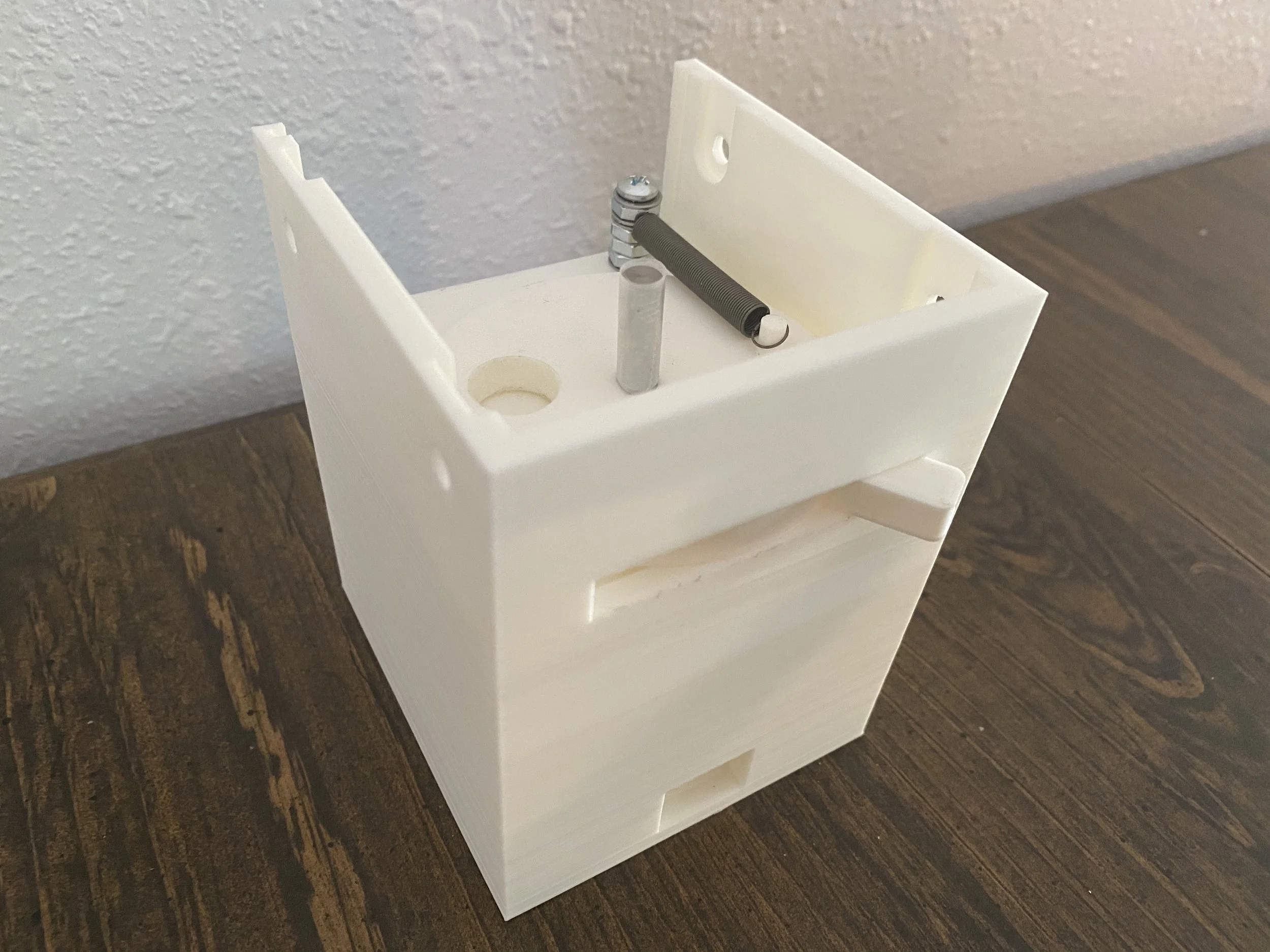 This was the final project in Foundations of Product Realization (ME 102). The goal was to design, print, and assemble a fully-functional prototype of an M&M dispenser that incorporates a spring, and is able to dispense at least ten M&Ms.